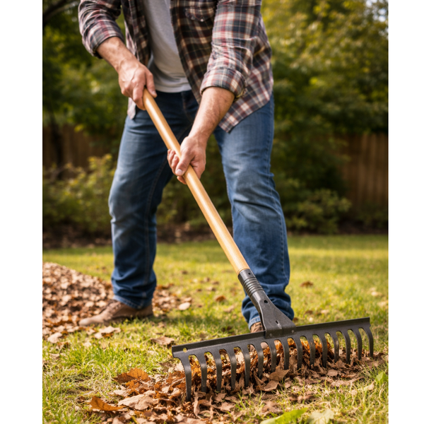 O ancinho vem com um cabo de madeira nobre de 1,2 m de comprimento, proporcionando maior alcance e ergonomia durante o uso, sem comprometer o controle e o conforto. Essa combinação de cabo longo e dentes reforçados torna o produto ideal tanto para tarefas domésticas quanto profissionais.