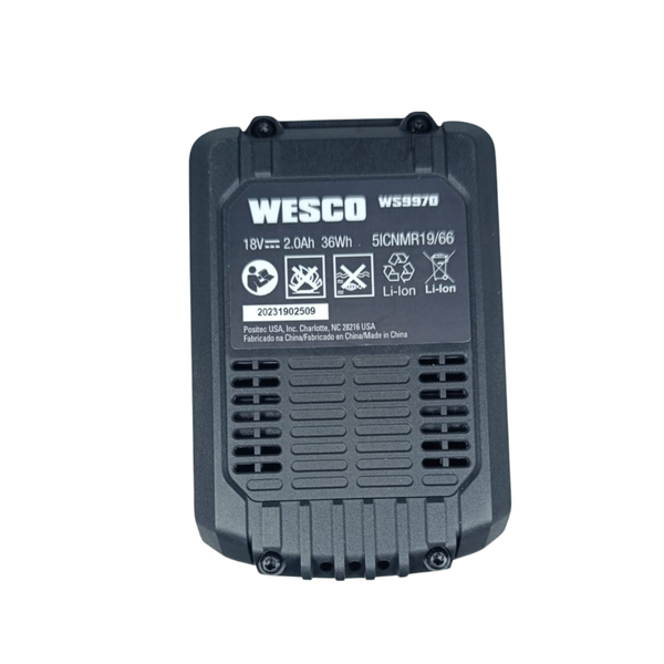 A Bateria de Lítio Recarregável 18V Max 2,0Ah WS9970 da Wesco é a solução perfeita para garantir autonomia e desempenho nas suas ferramentas elétricas.