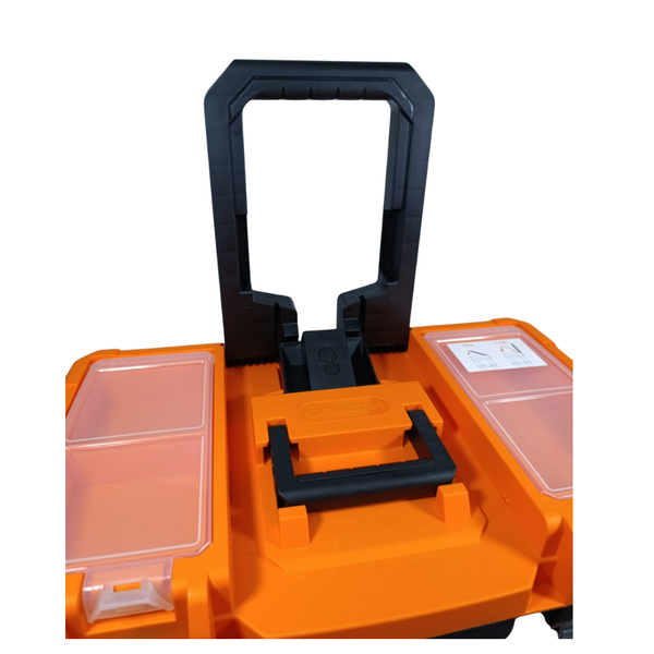 Organização inteligente: com compartimentos nos módulos superiores, ideal para ferramentas menores (parafusos, brocas, chaves), enquanto a parte inferior acomoda ferramentas maiores ou equipamentos volumosos.