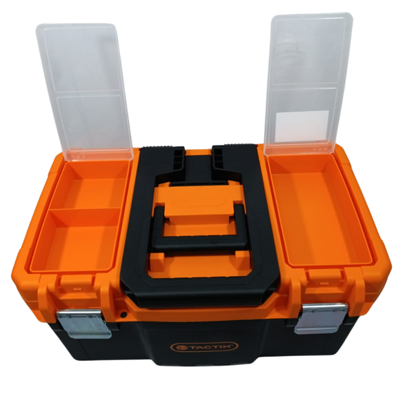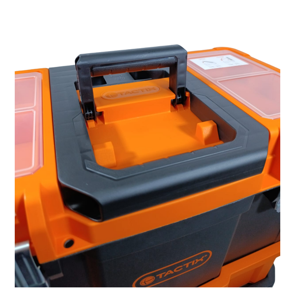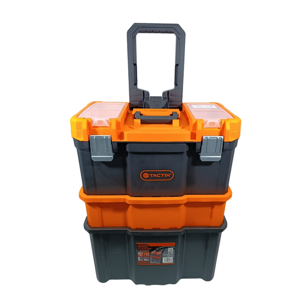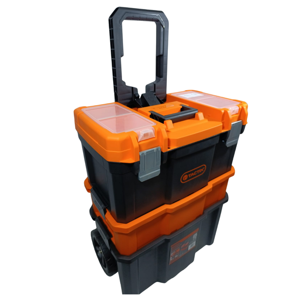 A Caixa de Ferramentas Modular 3×1 com Rodas da Tactix é uma solução robusta, versátil e funcional para armazenamento, organização e transporte de ferramentas em ambientes profissionais e domésticos. Com estrutura modular, rodas grandes e componentes reforçados, ela alia portabilidade e durabilidade, atendendo usuários que precisam combinar mobilidade com organização inteligente.