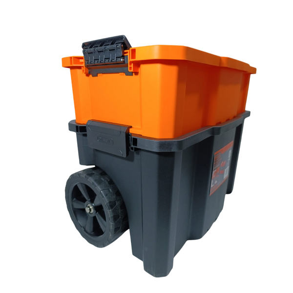 Transporte facilitado: as rodas de 7″ e a alça tornam mais fácil deslocar a caixa em pisos planos, mesmo com carga.
