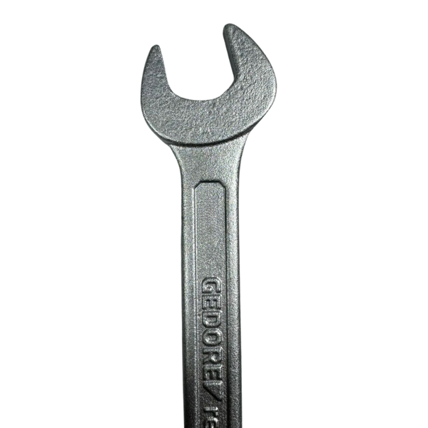 A Chave combinada é fabricada em aço cromo-vanádio GEDORE red com acabamento niquelado e cromado, oferecendo resistência e durabilidade.