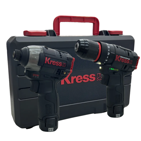 Este kit combinado Kress 12V oferece 2 ferramentas sem escova premium para perfuração/cravamento e fixação/martelo.
